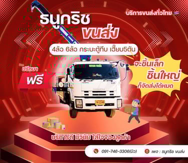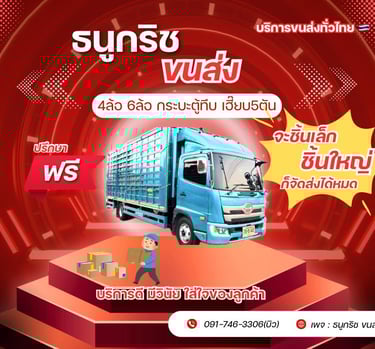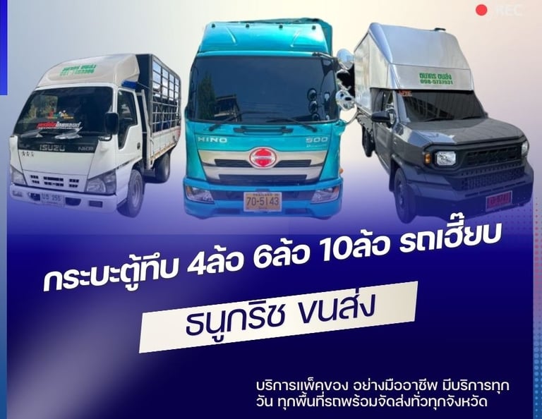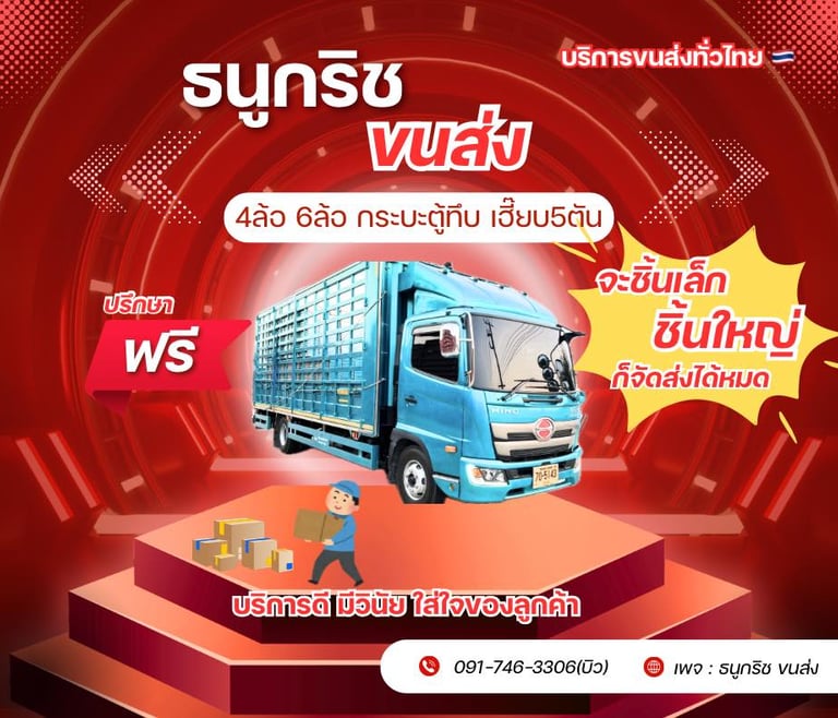 ธนูกริชขนส่ง รถรับจ้าง ขนย้ายทั่วประเทศ ตั้งแต่ กระบะตู้ทึบ 4ล้อ 6ล้อ 10ล้อ รถเฮี๊ยบ